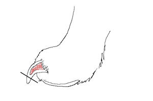 Die Haare an den hinteren Fesseln werden leicht gekürzt. Damit kann auf Ausstellungen die Winkelung der Fesseln besser beurteilt werden. Im Alltag kann es auch ganz praktisch sein, da so weniger Schmutz hängen bleiben kann.