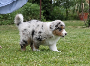 6 Hündinnen: 2 Blue merle; 3 Black tri; 1 Red tri