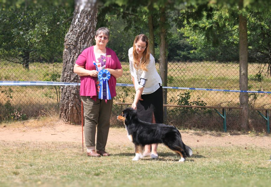 Wir können es noch gar nicht glauben. Kate hat auf der Spezialzuchtschau in Löffingen unter Richterin Nannette Newbury (Stonepine Aussies) in der Zwischenklasse ein V1 bekommen! Wir hatten eine starke Zwischenklasse mit tollen Hunden im Ring. Um so überraschender war diese super Bewertung. Dazu wurde sie dann noch Reserve Beste Hündin und Best Swiss Bred! Wir freuen uns sehr.